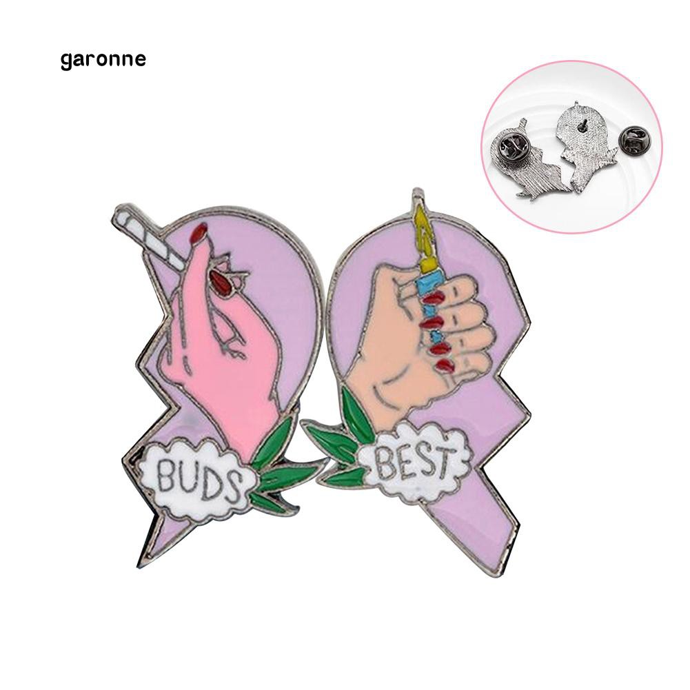 Đặc điểm: Một đôi ghim cài áo sáng tạo cho nữ. Thiết kế nửa trái tim tan với cụm từ "Best Buds" và hai tay châm điếu thuốc. Tay nghề tuyệt vời, làm cho bạn duyên dáng và thu hút hơn. Cũng phù hợp với trang phục hàng ngày của bạn, chẳng hạn như khăn quàng cổ, áo len, váy, v.v.