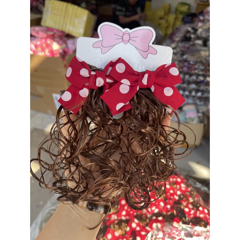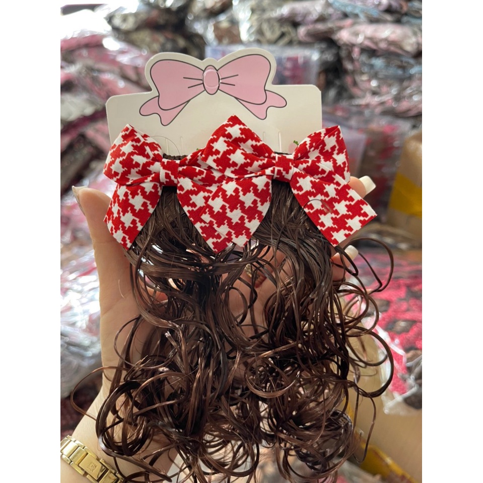 Giới thiệu Set 2 kẹp mái nơ tóc giả đỏ cho bé diện tết