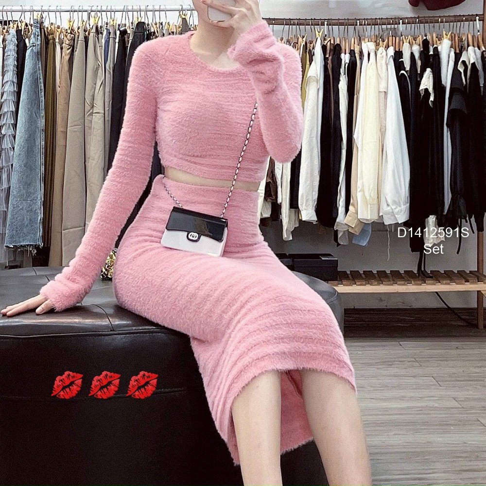Set 2 món len lông áo croptop tay dài kèm chân váy dáng dài hàng QC!