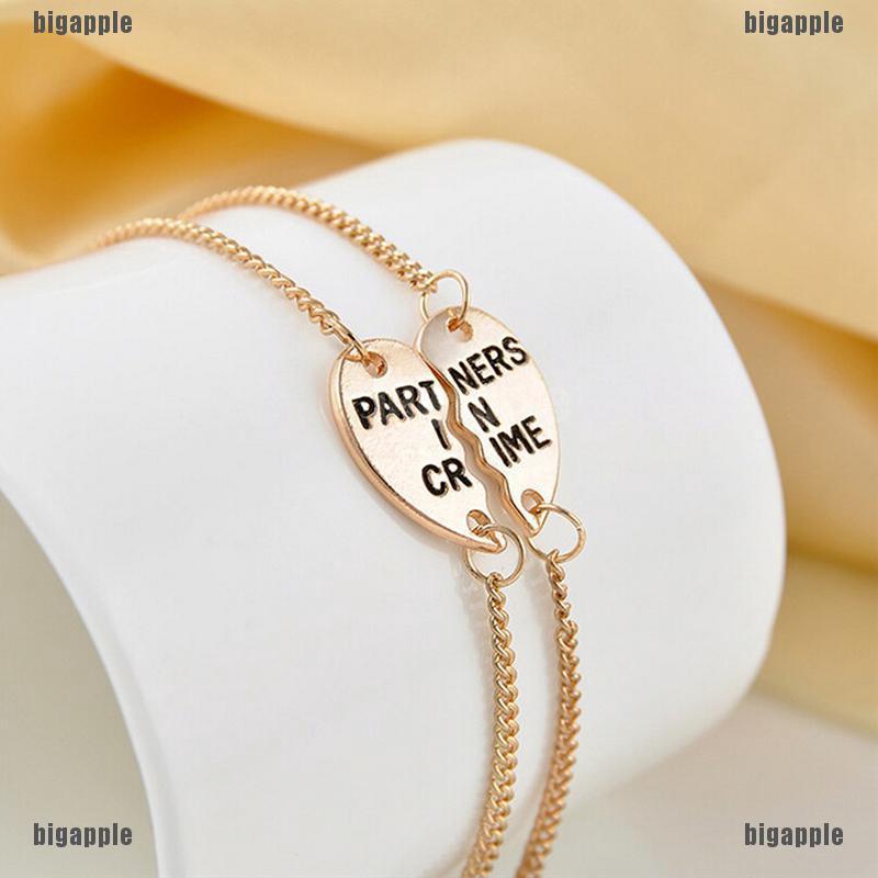 Chào mừng bạn đến với cửa hàng bigapple.vn Bộ 2 vòng tay trái tim chia đôi dành cho bạn thân 100% sản phẩm mới, chất lượng cao Chất liệu: hợp kim Màu sắc: Vàng Chiều dài: 16 + 8cm Họa tiết: Trái tim Gói hàng bao gồm: 1 Cặp vòng tay
