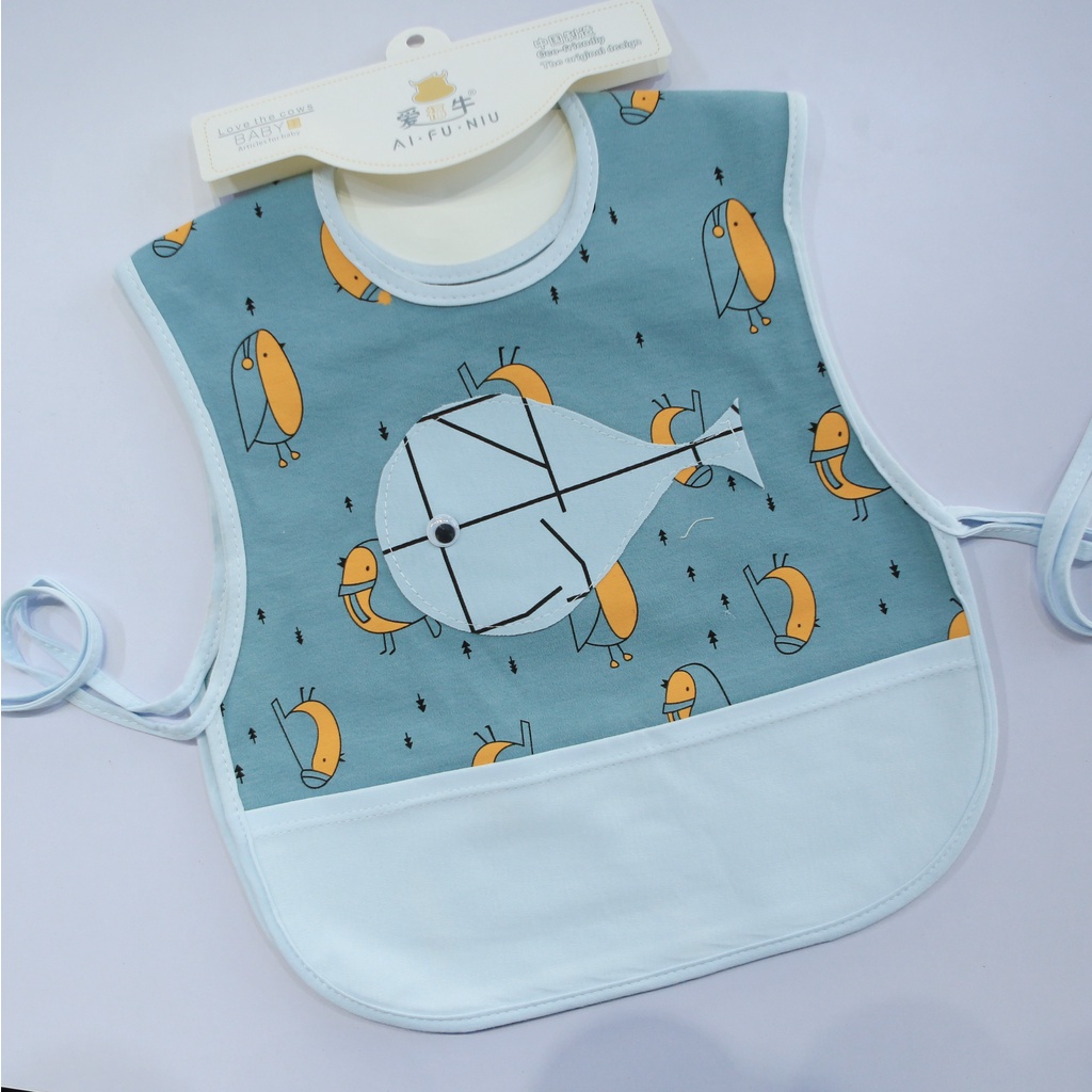 Áo Yếm Ăn Dặm Họa Tiết Cá Ai Fu Niu Cao Cấp Chống Thấm Nước, Có Máng Đựng Thức Ăn Rơi