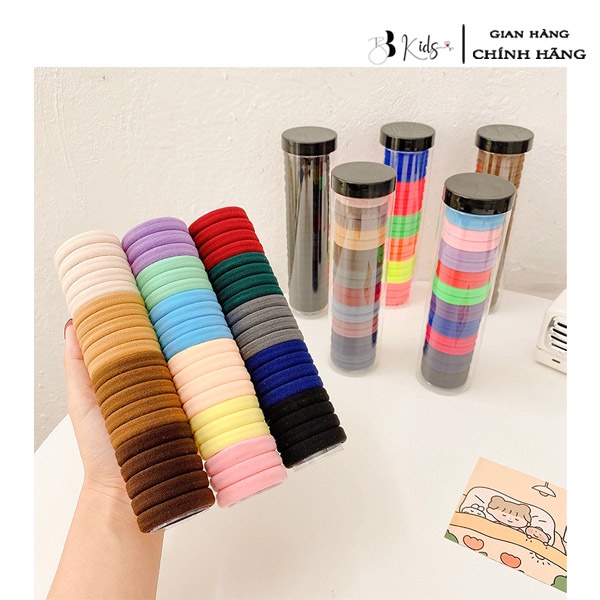 Thương Hiệu : BB Kids 👉👉👉 Set 20 Dây Chun Buộc Tóc Siêu Xinh Đựng Trong Hộp Ống Trong Suốt Tiện Lợi Chất Thun Buộc Siêu Co Dãn Phong Cách Hàn Quốc Nhiều Màu Vintage Dùng Được Cho Cả Mẹ Và Bé