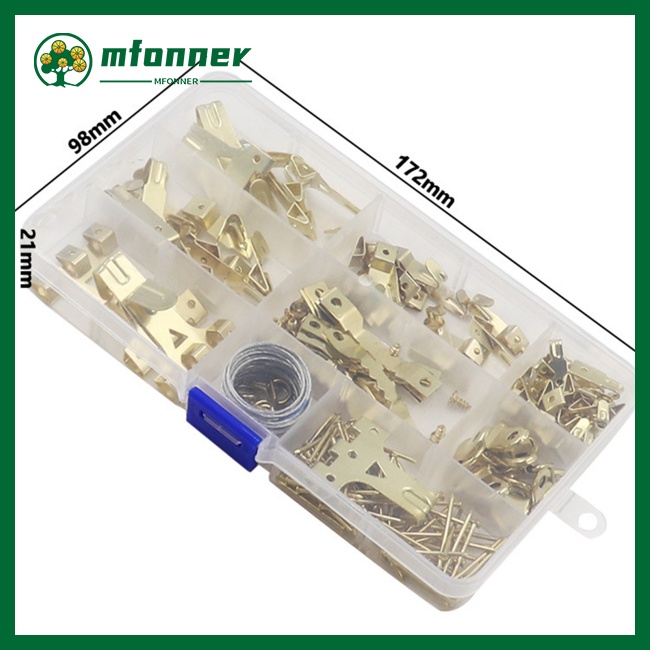 - Bộ treo tranh hoàn hảo - 220 phụ kiện bao gồm dây điện , móc , đinh và hơn thế nữa. trong hộp phần cứng . - Bộ phần cứng cơ bản Bộ treo tranh , hoàn hảo cho các dự án gia đình và các vật dụng trang trí . - Móc treo tranh có nhiệm vụ cao được đánh giá là 10 lbs , 20 lbs , 30 lbs , 40 lbs. 75 lbs . - Chúng kết hợp hoàn hảo với các đinh trong hộp và giúp bạn dễ dàng treo các bức tranh có kích thước khác nhau lên tường . - Được đóng gói trong một hộp cứng an toàn để dễ dàng cất giữ . Tính năng '