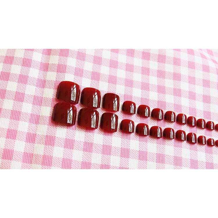 set 24 móng chân giả đỏ rượu vang thiết kế độc đáo Jojo J06 móng giả nailbox trẻ sang chảnh cá tính tự làm tại nhà