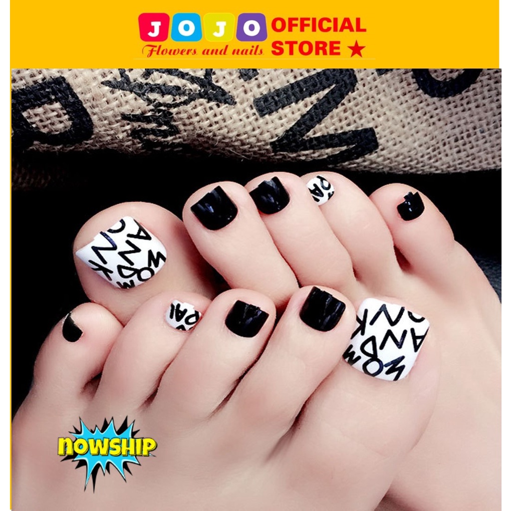 Giới thiệu Set 24 móng chân giả họa tiết 3D J29 Jojo móng giả thời trang kèm keo tự làm tại nhà