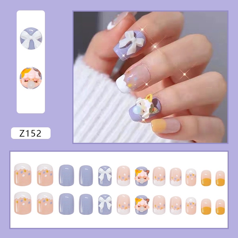 HƯỚNG DẪN SỬ DỤNG: - Ướm thử móng sao cho vừa mới móng thật. Nếu móng tay của bạn bé hơn so với móng giả thì dùng dũa để dũa 2 bên cạnh móng. - Dùng keo bôi đều lên bề mặt trong của móng giả. - Úp móng giả vào móng thật và giữa khoảng 5-10s. - Lưu ý nếu bạn muốn móng giả được giữ lâu hơn thì có thể dũa mỏng bề mặt của móng thật hoặc đổ thêm keo. - Khi muốn tháo móng: Ngâm nước ấm khoảng 10-15' là keo sẽ tự bung.