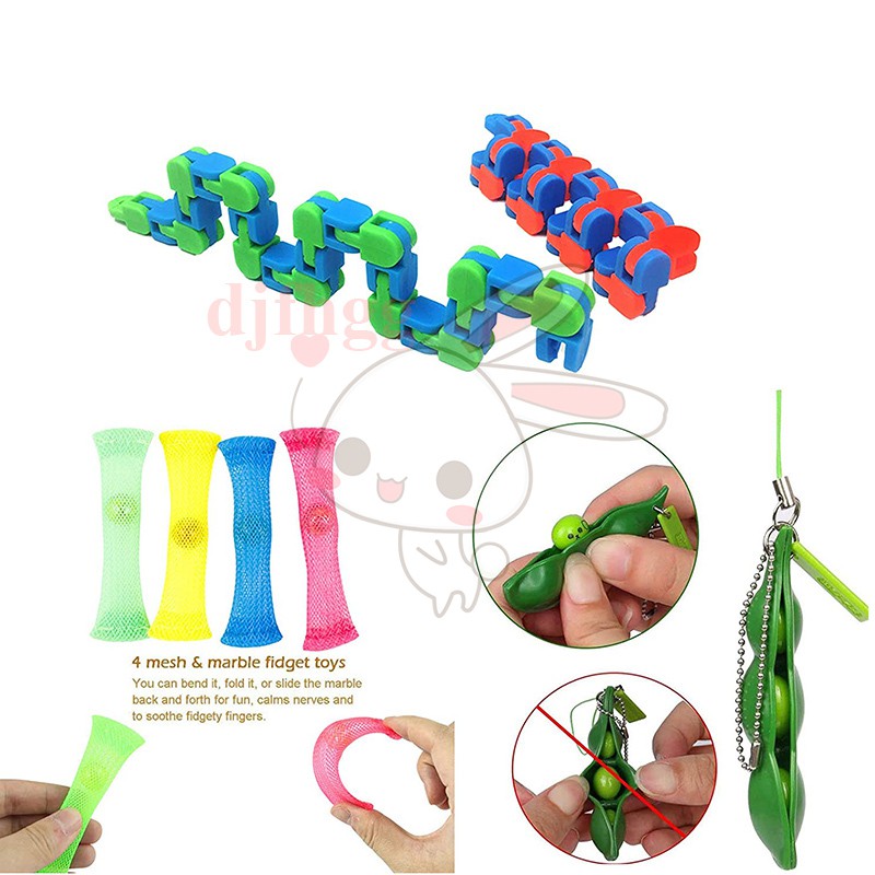 Mô tả sản phẩm: Đặc trưng: 1, Đồ chơi 8 kiểu khác nhau và 26 món: Set đồ chơi Fidget gồm 26 các bộ phận, tổng cộng 8 loại đồ chơi chống căng thẳng, mỗi loại đồ chơi bạn thấy trong hình đều có. 2. Đồ Chơi Du Lịch Đa Chức Năng: Set đồ chơi giác quan Fidget cũng rất dễ xách tay. Những món đồ chơi dễ kích thích này rất thích hợp cho các lớp học và văn phòng. Mang chúng theo khi bạn đi du lịch hoặc đến nhà thờ. 3. An toàn cho trẻ em: Không độc hại. Đạt tiêu chuẩn đồ chơi của Mỹ. Đã được kiểm tra an toàn. Mỗi món đồ chơi Fidget đều được làm từ chất liệu bền, an toàn cho trẻ nhỏ và người lớn. 4. Tặng Quà Cho Mọi Lứa Tuổi: Những đồ chơi giác quan Fidget này hoàn hảo cho bất kỳ ai từ 5 đến 85 tuổi. Đây là những món quà hoàn hảo cho các dịp kỷ niệm hoặc tiệc tùng. 5. Trò chơi Giảm Căng thẳng & Lo lắng: Dễ dàng sử dụng các đồ chơi cảm giác này để chơi, đẩy, kéo dài và nghiêng để giảm căng thẳng và lo lắng. Mỗi món đồ chơi giúp bạn thư giãn và giảm bớt căng thẳng.