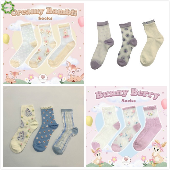 Giới thiệu Set 3 Đôi Vớ Cotton Họa Tiết Hoạt Hình Phong Cách Lolita Đáng Yêu