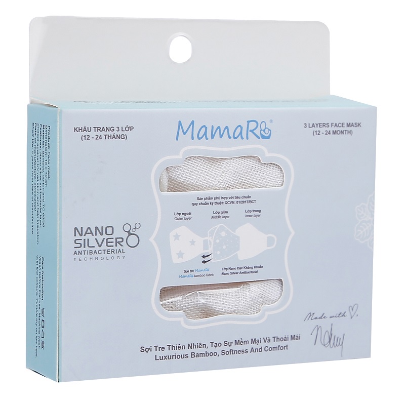Set 3 Khẩu Trang Mamaru- Khẩu Trang Sợi tre kháng khuẩn cho bé 1-2 Tuổi Chất liệu: Sợi tre thiên nhiên và cotton Kích thước: 9 x 12cm dành cho bé từ 1 - 2 tuổi - Đóng gói: 3 set/chiếc