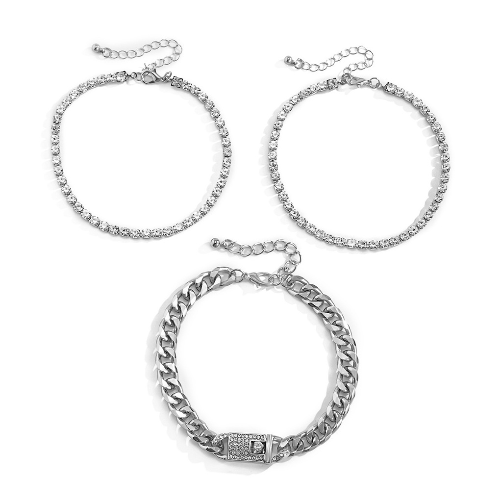 Mô tả: Danh mục: Vòng chân Phong cách: đơn giản Phong cách: nữ tính Phong cách chuỗi: Chuỗi Cuba Quy trình xử lý: mạ điện Chất liệu: Hợp kim + Chuỗi vuốt + Rhinestone + Nhôm Kích thước: khoảng 22 + 5cm Màu sắc: vàng, bạc Số lượng: 3 cái / bộ