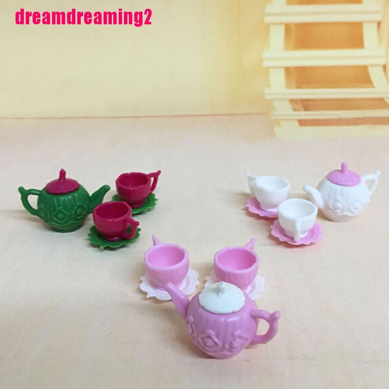 Chất liệu: Nhựa Kích thước: Ấm 3,5 * 2,1cm; chén 2 * 2cm Màu sắc được gửi ngẫu nhiên Thích hợp cho trang trí nhà búp bê DIY Gói hàng bao gồm: 1 bộ