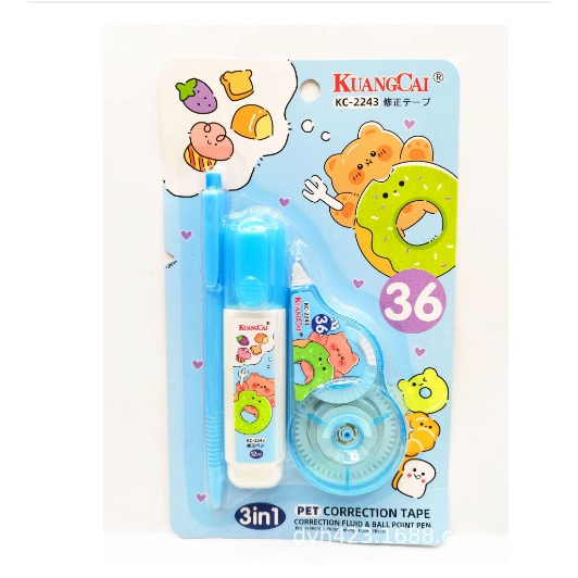Set 3 món bút xóa kéo khô, bút xóa nước bút bi mực gel hình cute dễ thương [Siêu rẻ] Bộ đồ dùng gồm:1 bút xóa nước,1 bút xóa khô,1 bút bi mực gel siêu cute Sét 3 món tiện,thích hợp làm quà tặng...