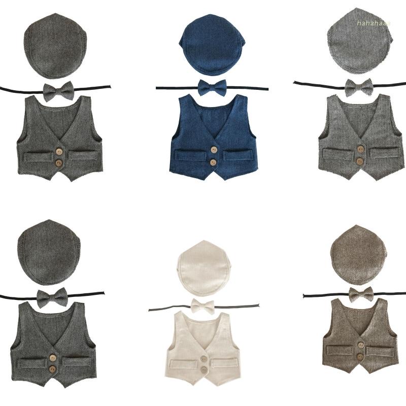 Set 3 Món Đồ Chụp Ảnh Gồm Mũ Beanie Thắt Nơ Màu Trơn Phối Áo Vest Màu Trơn Làm Phụ Kiện Chụp Ảnh Cho Bé Sơ Sinh