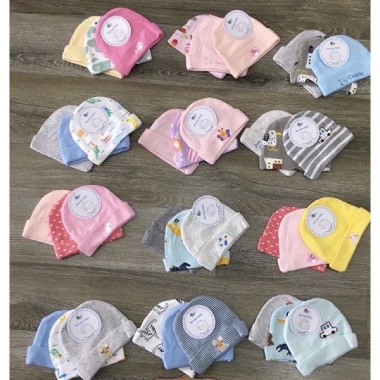 Giới thiệu Set 3 mũ cotton dày dặn co giãn cho bé 0 - 6 tháng