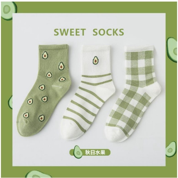 Giới thiệu Set 3 vớ nữ cổ cao cute in hình quả bơ xanh siêu xinhhh