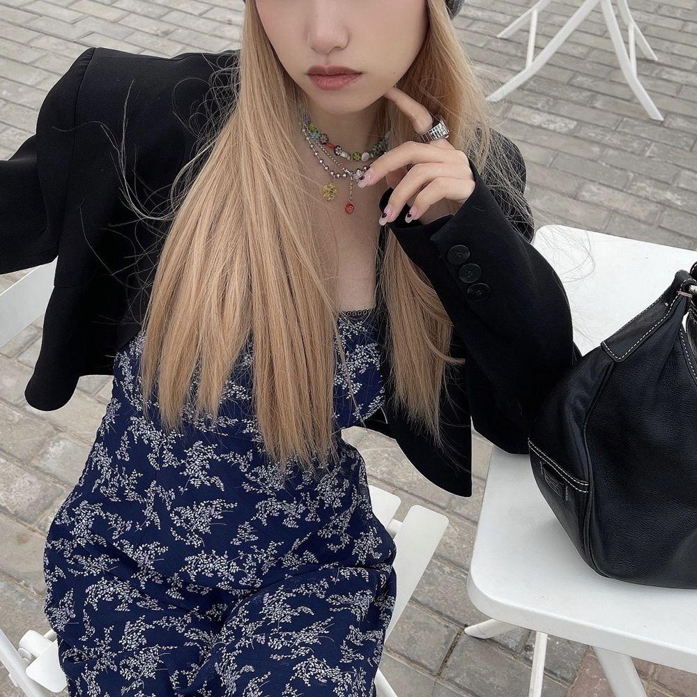 2. Vui lòng cho phép chênh lệch 0-5g do đo lường thủ công . Bộ vòng cổ Nhiều lớp cườm Chork Mặt dây chuyền Trang sức Bộ đồ ba mảnh Bộ đồ bằng thép Titan Hoa tráng men Y2K Thời trang Phong cách mới