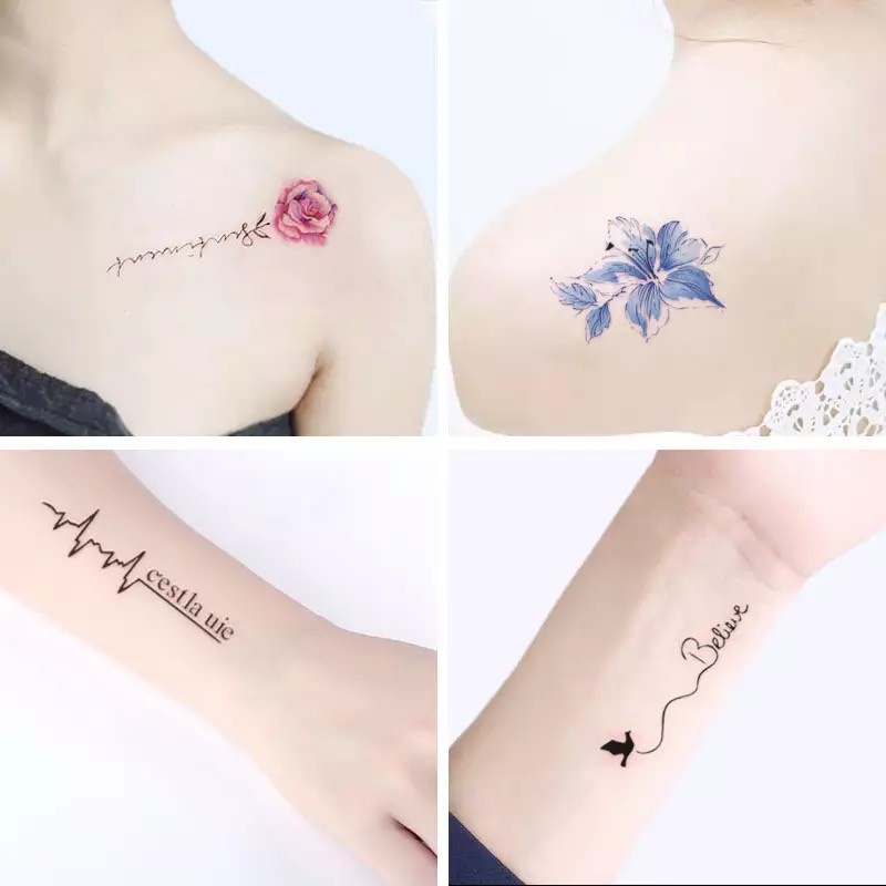 Phương hướng 1) Da phải sạch và khô hoàn toàn 2) Cắt thiết kế bạn chọn và tháo bìa giấy trong suốt 3) Đặt hình xăm úp mặt xuống da 4) Xoa mặt sau của hình xăm chắc chắn bằng khăn ẩm hoặc miếng bọt biển trong 10-20 giây 5) Nhẹ nhàng sống góc hình xăm để kiểm tra xem nó có được chuyển hay không. Nếu nó đã chuyển, hãy nhẹ nhàng bóc giấy ra. Nếu không, hãy nhấn xuống một lần nữa và làm ướt lại. 6) Sau khi lấy giấy ra, đợi vài phút trước khi rửa nhẹ bằng nước. Vỗ nhẹ cho hình xăm khô 7) nếu được điều trị cẩn thận, hình xăm của bạn sẽ tồn tại trong một vài ngày.