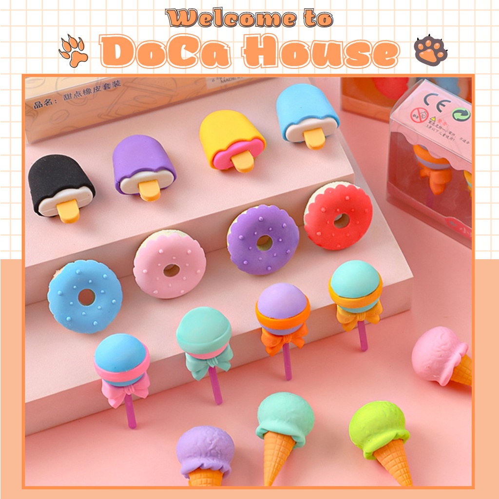 Vào shop tham khảo thêm các sản phẩm khác, gom mua cho KHỎI TỐN SHIP nè! ⭐⭐ Nhớ đánh giá 5 sao khi bạn hài lòng với món hàng của DoCa House nha ⭐⭐ -------------------------------- ⚡ Thông số sản phẩm: - Chất liệu: Nhựa ABS cao cấp, không độc hại + gương kính - Kích thước: 2 x 5 (cm) - Mẫu hình: Bánh Donut, Kem que, Kem ốc quế - Trọng lượng: 700gr - Quy cách: 1 hộp gồm 4 cục tẩy theo chủ đề - Sản phẩm phù hợp cho bé trên 3 tuổi sử dụng - Không gây độc hại cho trẻ em và thân thiện với môi trường - Sản xuất: Trung Quốc