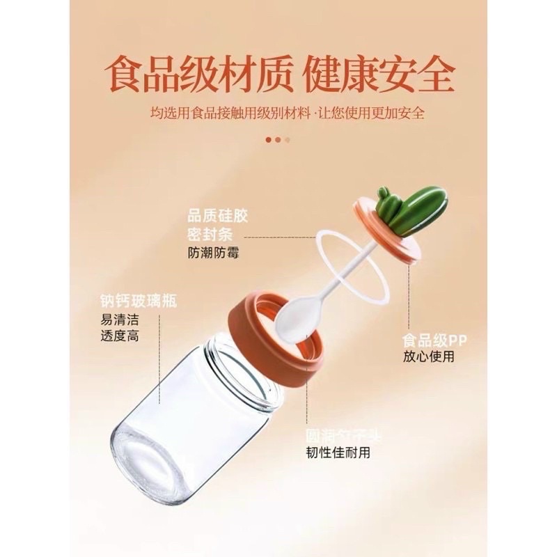 - Thiết kế muỗng cầm tay tiện lợi, dễ dàng thao tác khi nấu nướng - Hộp đựng gia vị kín giúp ngăn ẩm, bảo quản gia vị lâu dài không bị vón cục - Chất liệu: thủy tinh cao cấp không trầy xước, chịu được nhiệt độ cao, đảm bảo an toàn cho sức khỏe -Thiết kế tiện lợi, nhỏ gọn. - Hũ đựng gia vị có thể được sử dụng để giữ chất lỏng, bột và chất rắn. - Muỗng của lọ gia vị được gắn vào nắp, vì vậy gia vị không làm nhiễm bẩn tay cầm của muỗng, và nó có thể giải quyết hiệu quả vấn đề mà muỗng không dễ lấy ra.