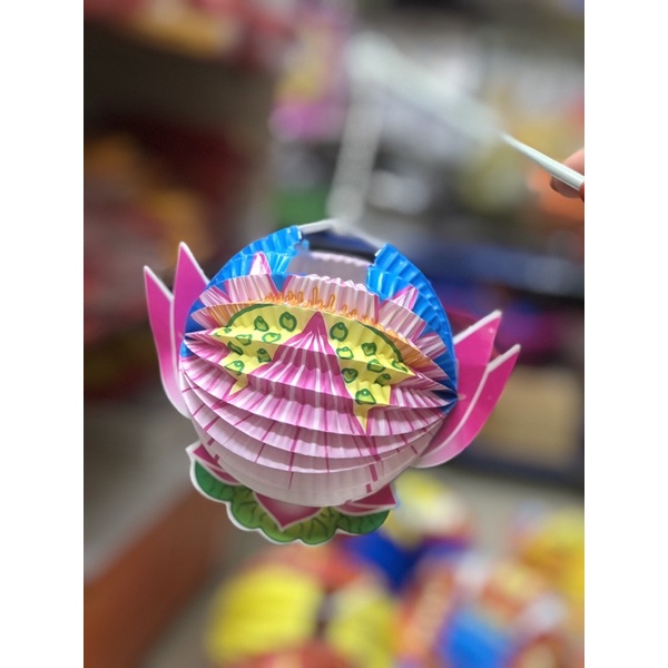 Chất liêu: Đèn được làm bằng giấy, tay cầm bằng nhựa, dưới đáy của đèn có kẹp sắt để có thể kẹp nến vào thắp sáng đèn Xuất xứ : Việt Nam Đèn lồng chơi trung thu Giao hàng đúng hình không đúng hoàn lại tiền.