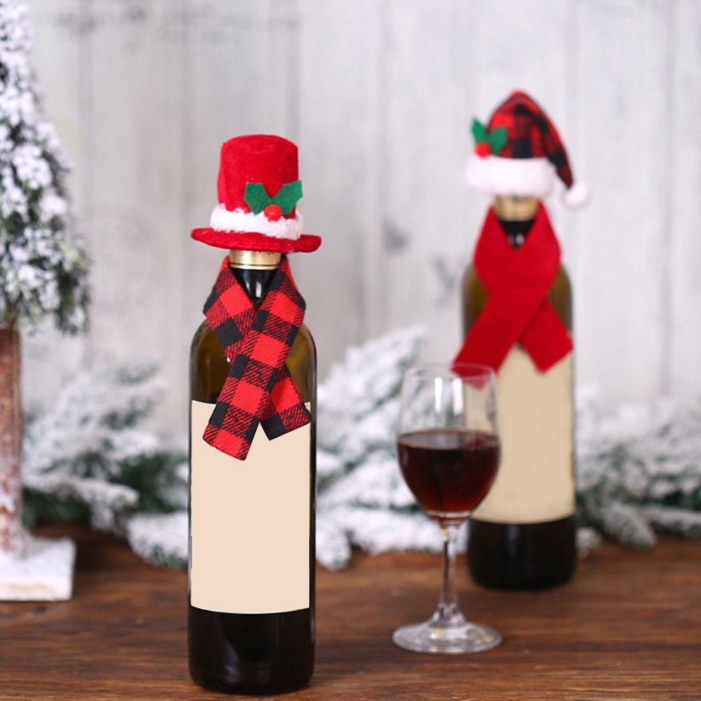1 x Bộ trang trí chai rượu Giáng sinh (4PCS) Bộ trang trí chai rượu Bộ chai rượu Nắp chai rượu Túi tay áo Bàn ăn tối Trang trí Giáng sinh Trang trí Giáng sinh Mũ Giáng sinh Khăn quàng cổ Xmas Quà tặng Đồ dùng cho bữa tiệc Năm mới Chất lượng cao