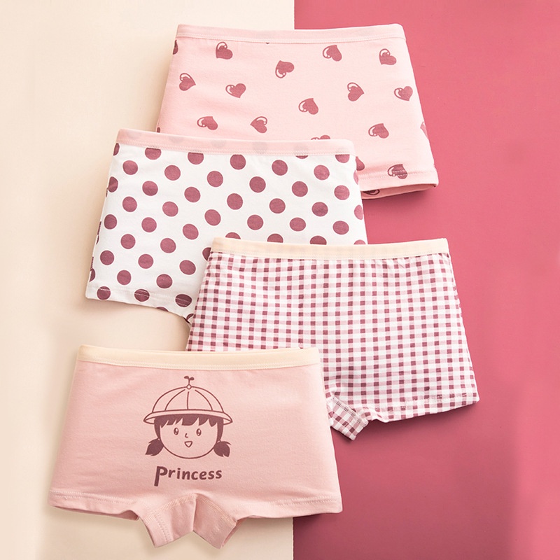 Set 4 Quần chíp đùi bé gái boxer vải cotton mềm mát họa tiết hoạt hình công chúa đáng yêu ( Quần đùi chip )