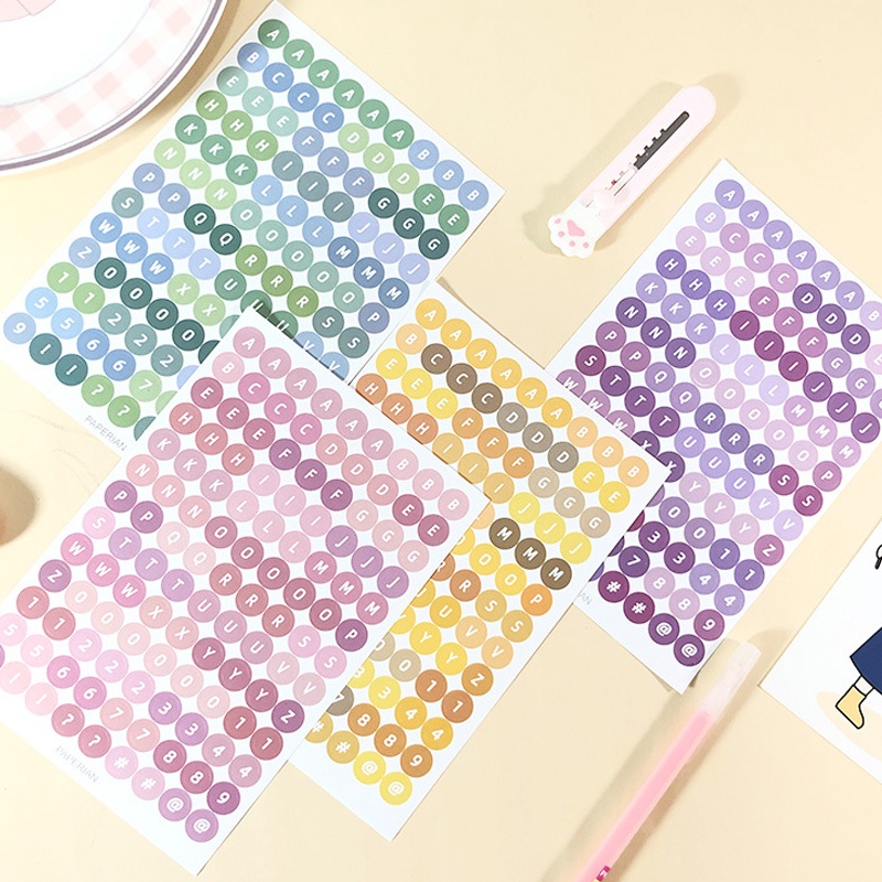 Giới thiệu Set 4 Tấm Nhãn Dán Hình Tròn / Chữ Số Màu Sắc Ngọt Ngào Trang Trí Sổ Tay DIY