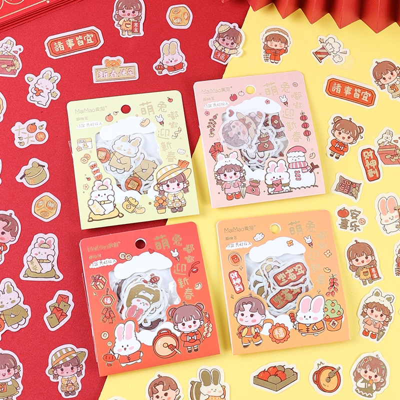 Giới thiệu Set 45 Sticker Dán Trang Trí Năm Mới Hình Thỏ Hoạt Hình Màu Đồng
