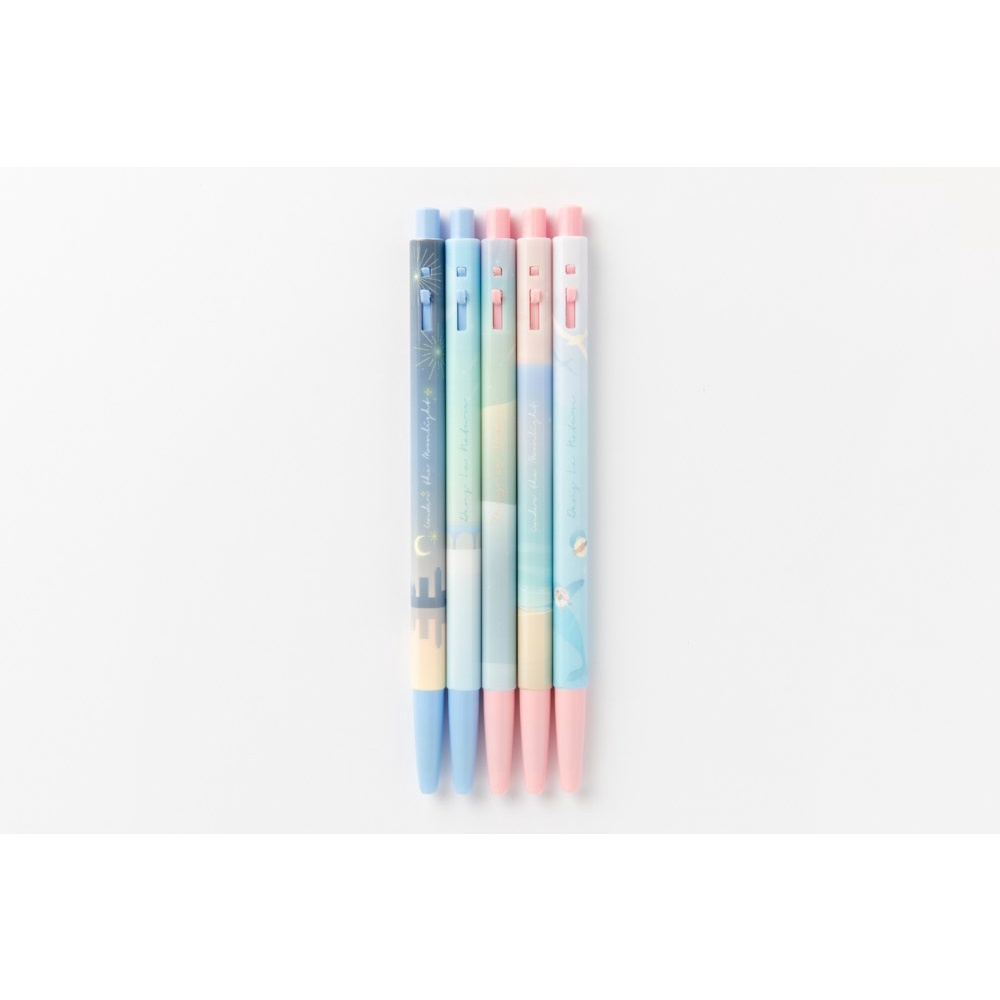 Một set gồm 5 cây bút bi với những hình ảnh minh họa concept thơ mộng Với hình dáng nhẹ nhàng, gọn nhẹ dễ dàng mang theo, thích hợp làm quà tặng cho bạn bè, người thân.