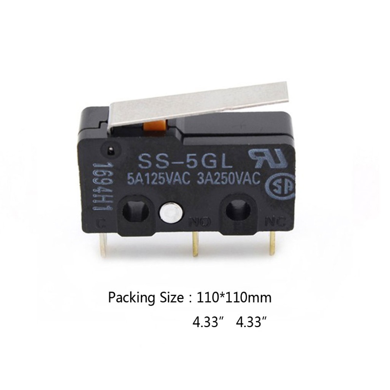 5Pcs ENDSTOP Micro Switch RAMPS 1.4 SS - 5GL Limit Switch 3D Printer Parts Specifications: ● Name:Limit Micro Switch ● Quantity:5 pcs ● Model:SS-5GL ● Electricity:3A/5A. ● Voltage:125V/250V.