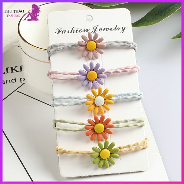 Giới thiệu Set 5 Dây Thun Cột Tóc Hoa Cúc Dễ Thương Cho Bạn Gái.