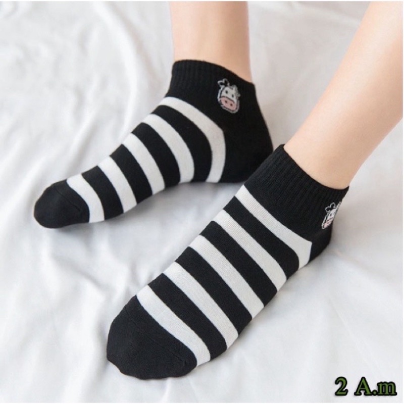 👉Tất Vớ Hàn Quốc Cổ Ngắn Họa Tiết con Bò Sữa