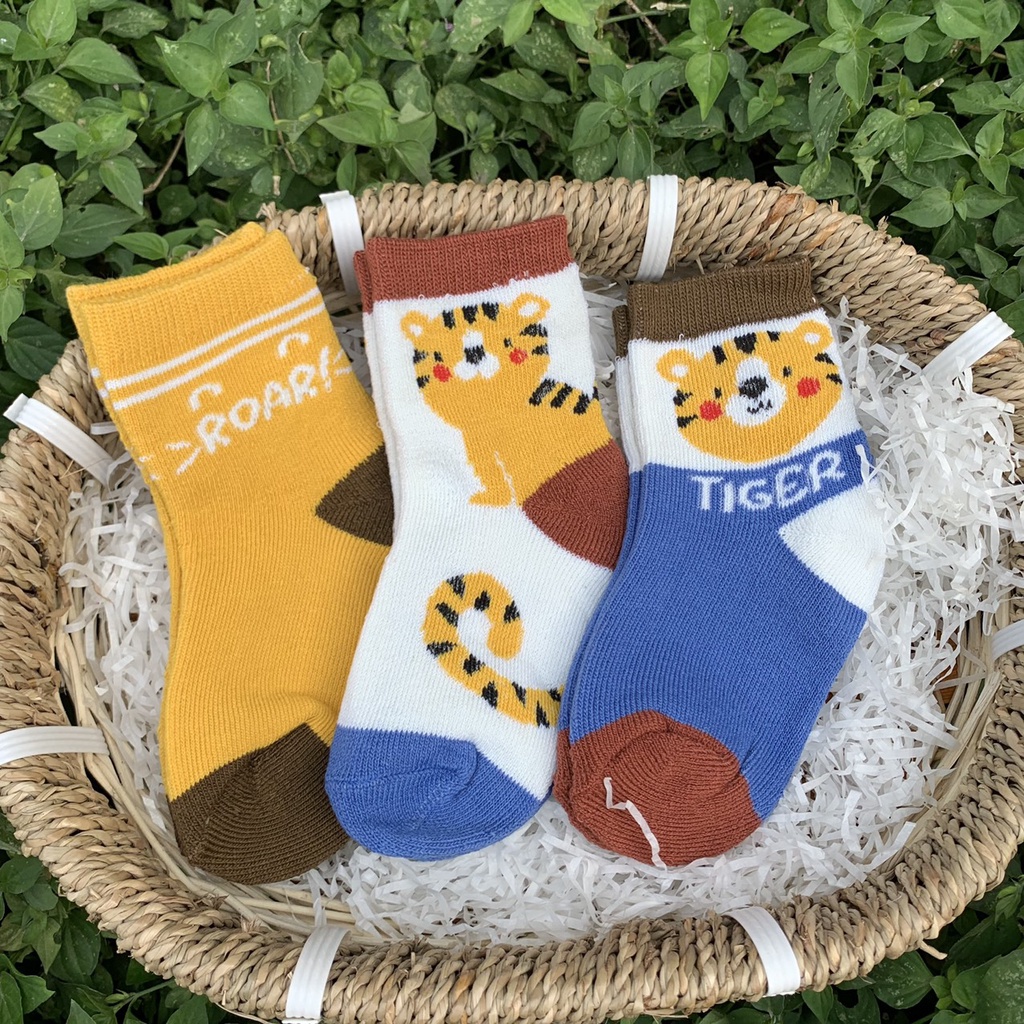 Giới thiệu Set 5 đôi Tất hình con Hổ đông cho bé trai và bé gái, chất cotton dày dặn, ấm áp