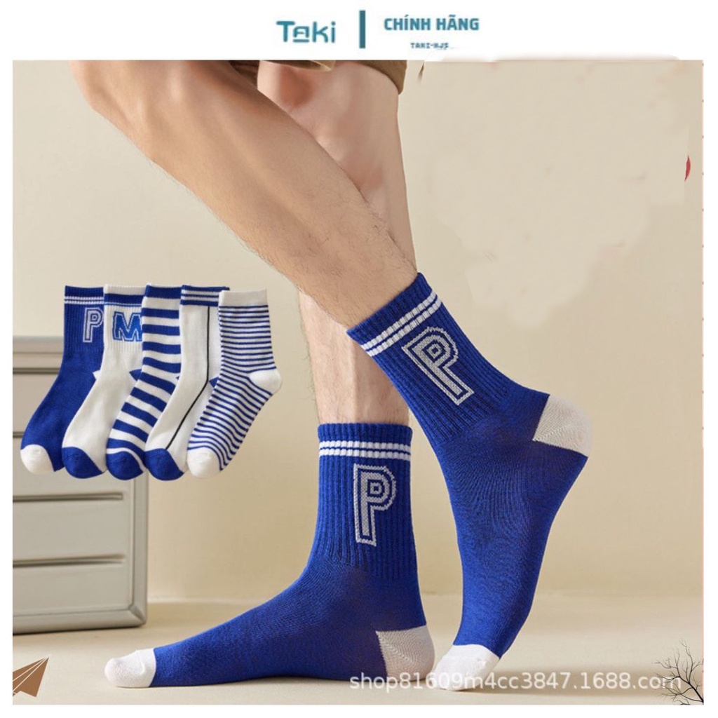 Giới thiệu Set 5 đôi tất nam nữ cổ cao phong cách Hàn Quốc hiện đại, vớ cao cổ màu xanh phong cách teen cá tính, thoáng khí