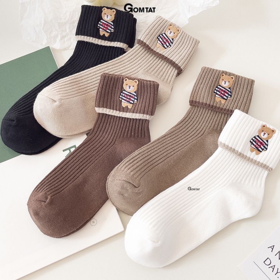 TÊN SẢN PHẨM: Tất nữ cổ trung cổ gập cao cấp dễ thương LISU21-CAOCAP-GAUCOGAP SIZE: Chân Nữ từ 36 - 40 (Tất co giãn theo size chân) Quy cách đóng gói: Gói 5 đôi, 5 màu như hình ảnh mô tả