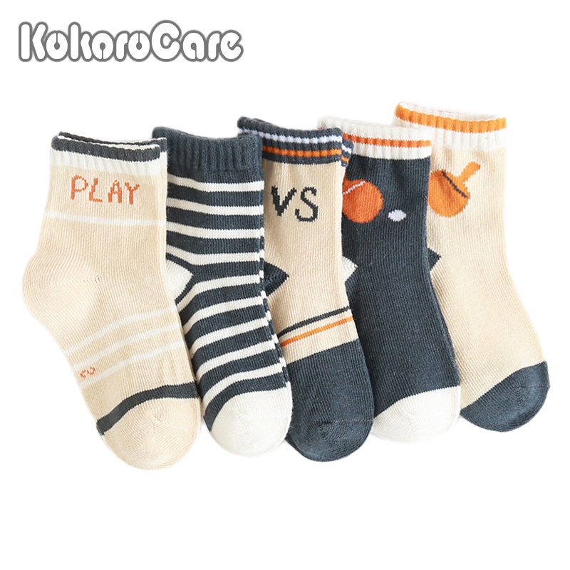 Set 5 đôi tất trẻ em KokoroCare UC-02 ống cao trung bình chất liệu cotton họa tiết bóng bàn size S/M/L/XL 1-12 tuổi