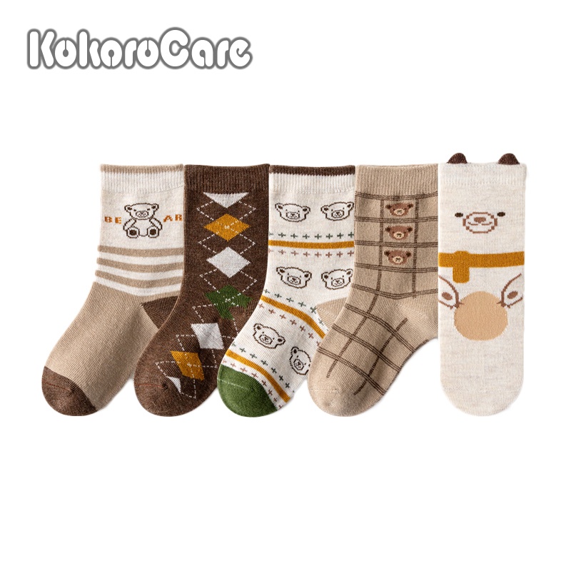 Set 5 đôi vớ cotton cổ vừa hình gấu KOKOROCARE ml-09 2022 cho bé trai và bé gái s/ m/ l 1-8 tuổi