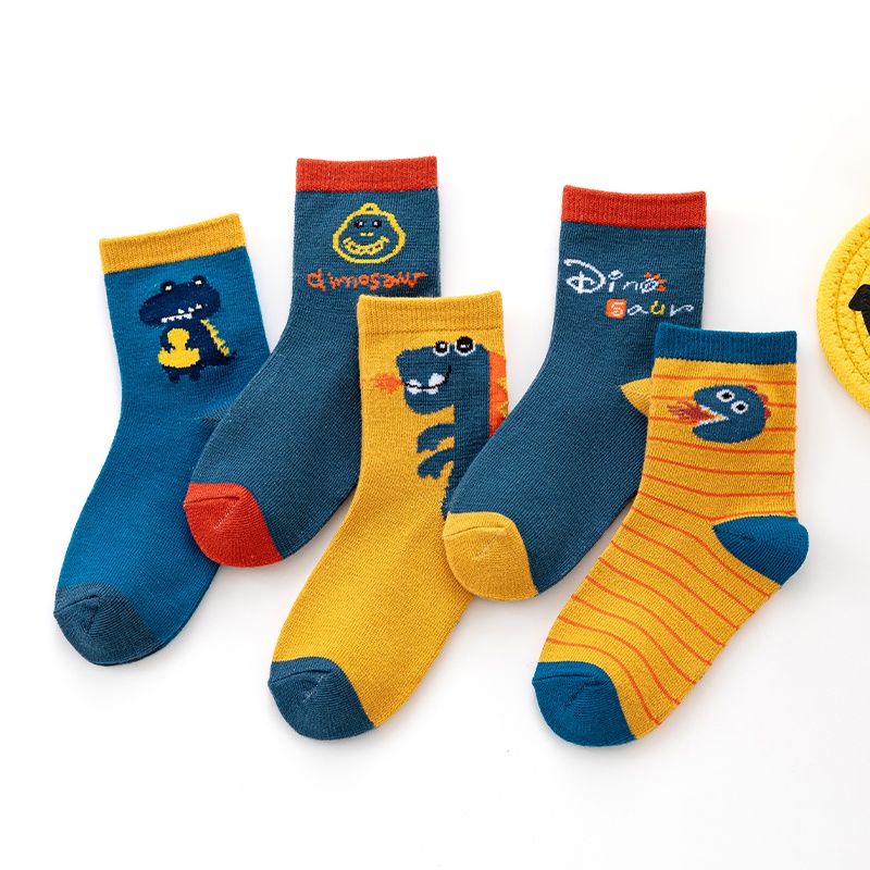 Thời Trang Trẻ Em > Phụ kiện trẻ em > Tất > Set 5 Đôi Vớ Cotton Họa Tiết Khủng Long Hoạt Hình Thoáng Khí Thoải Mái Chất Lượng Cao Dành Cho Bé Trai Bé Gái 1-12 Tuổi Bán Sỉ