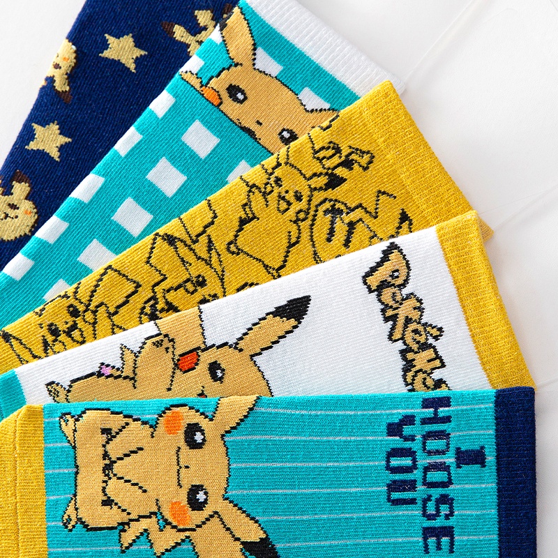 Giới thiệu Set 5 Đôi Vớ Cotton Thoải Mái In Họa Tiết Hoạt Hình Pikachu Cho Bé Trai Và Gái 1-12 Tuổi