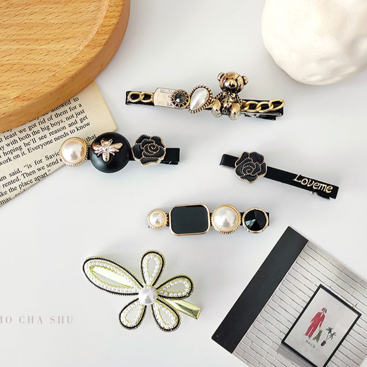 Giới thiệu Set 5 kẹp tóc hình gấu đính ngọc trai phong cách Retro Hàn Quốc cho nữ