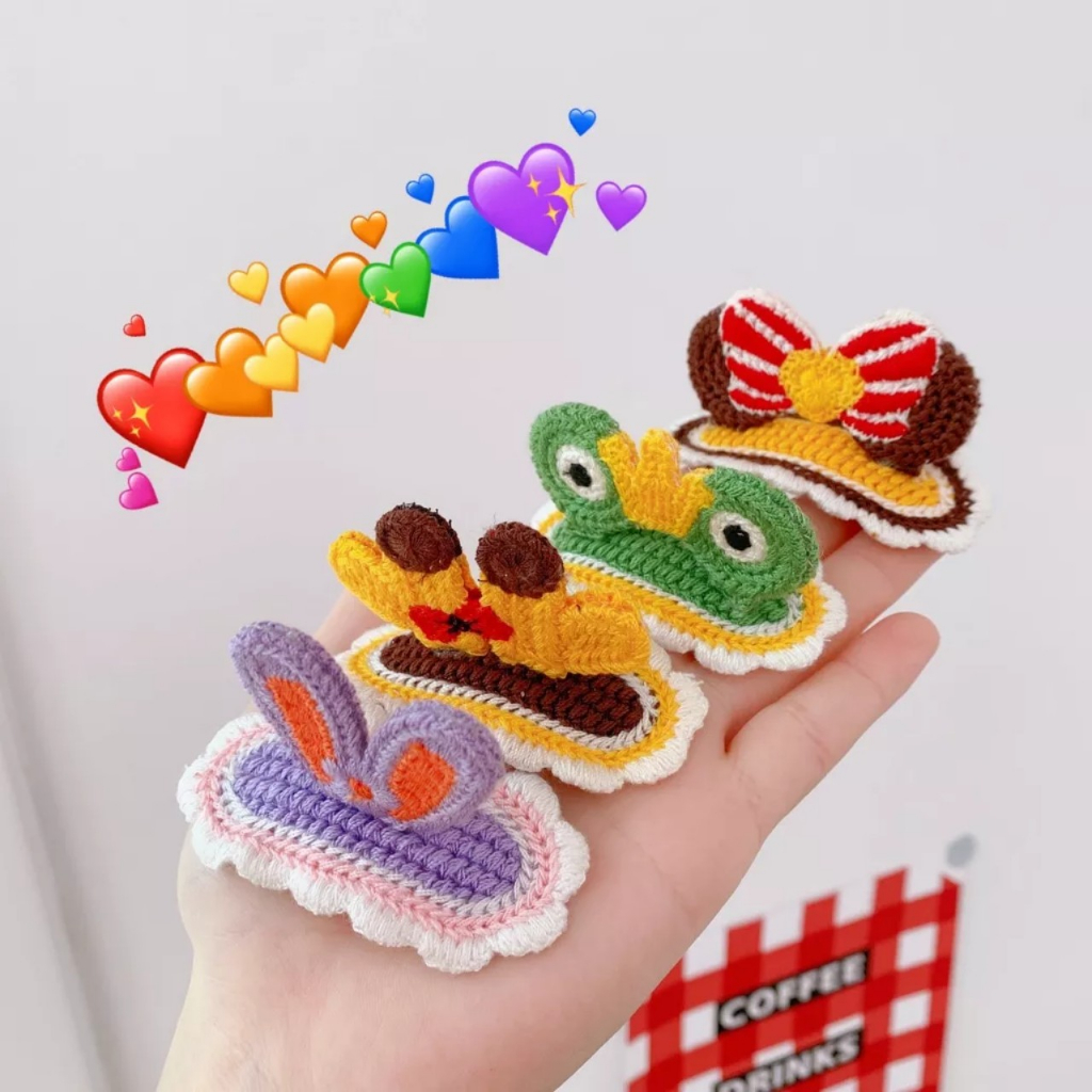 Giới thiệu Set 5 kẹp tóc mái dệt len thêu tay handmade cute cho bé, kẹp tóc len tai thỏ tự đan, kẹp mái hình bông A.luu