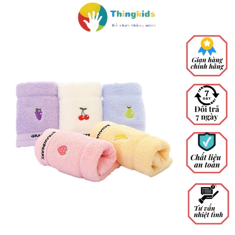 Giới thiệu Set 5 khăn mặt cotton hình hoa quả mềm mịn - Thingkids