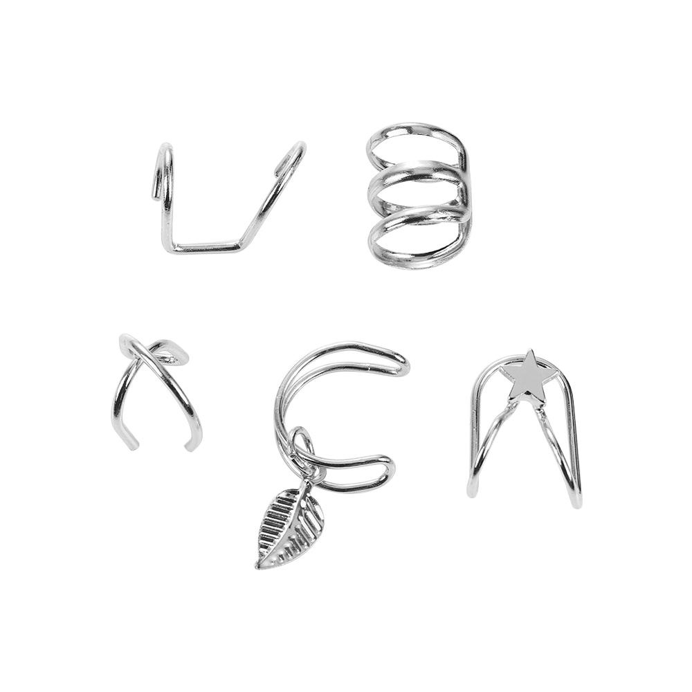 Gói hàng bao gồm: 5 Cái / bộ Bông tai Kẹp Bịt tai Kẹp Bông Tai Bông Tai Bông Tai Cartilage Bông Tai Không Khoảng Khoảng Lá Vàng Kẹp Trên 5 Cái / Bộ Giả Nam Thời Trang Nữ