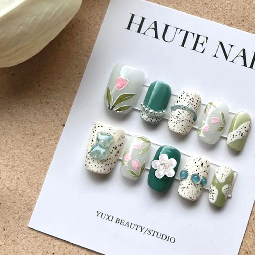 Nội dung gói: 5 chiếc Trang trí nghệ thuật móng tay 3D Dễ dàng đính trên móng tay tự nhiên hoặc nhân tạo