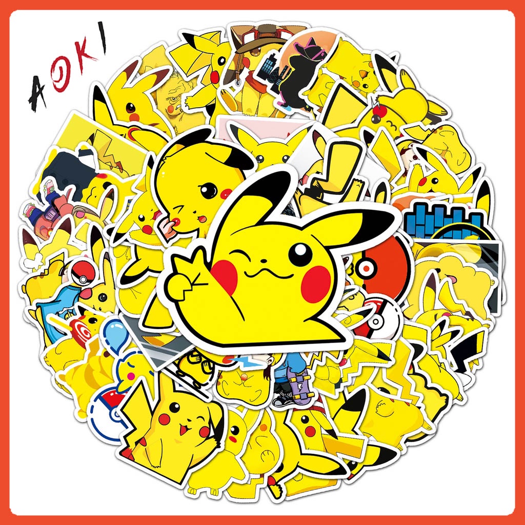 Set 50-54 Hình dán siêu dễ thương PIKACHU, Cây Cối hình đáng yêu dán Bình Nước Sổ Sách các loại Chống Nước