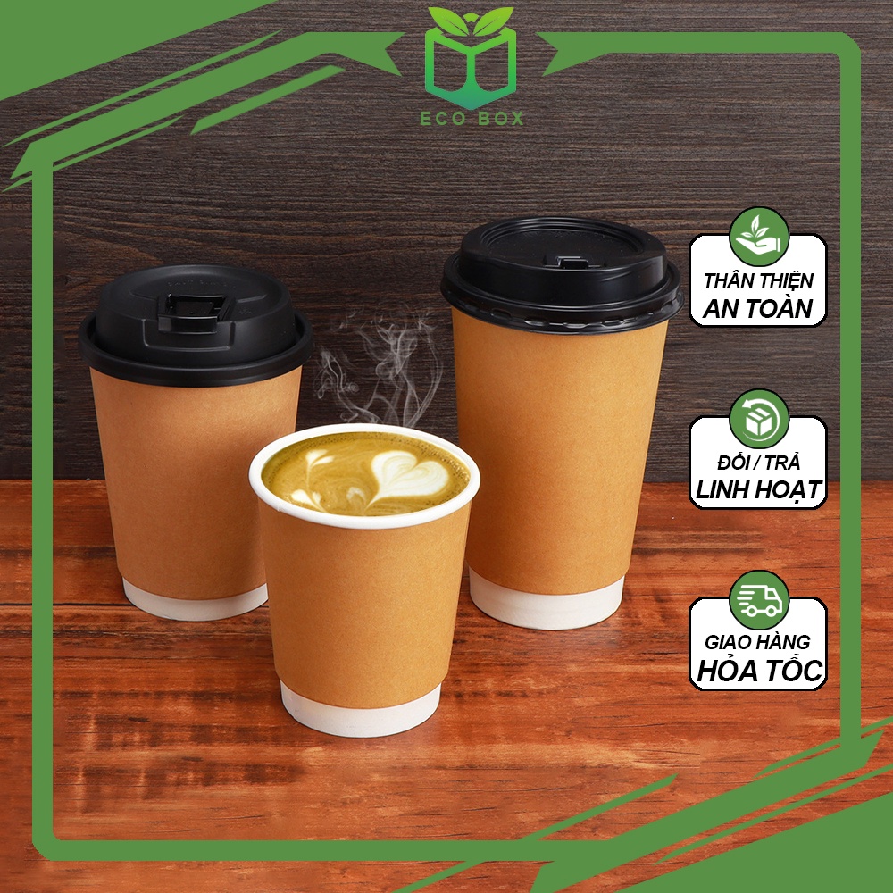 Giới thiệu Set 50 Cốc Giấy/Ly Giấy 2 Lớp Dùng 1 Lần Đựng Trà, Coffe Nóng, Đồ Uống Nhà Hàng, Chống Bỏng, Double Wall Kraft