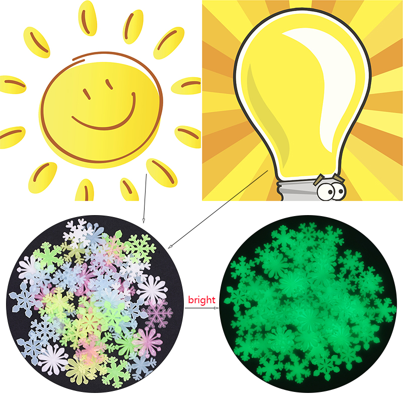 Đặc điểm Sử dụng nhựa chất lượng cao và sơn huỳnh quang làm chất liệu. Chất liệu thân thiện với môi trường, không độc hại và chống bụi. Bạn có thể dán những miếng dán hình bông tuyết này lên tường, trần nhà, bàn ghế, cửa sổ hoặc gương khi cần thiết. Bạn có thể tạo ra nhiều hình dạng khác nhau. Miếng dán sẽ hấp thụ năng lượng ánh sáng vào ban ngày và phát ra ánh sáng vào bóng tối vào ban đêm. Sản phẩm có thể giúp tạo ra một bầu không khí thư giãn. Thích hợp để trang trí phòng.