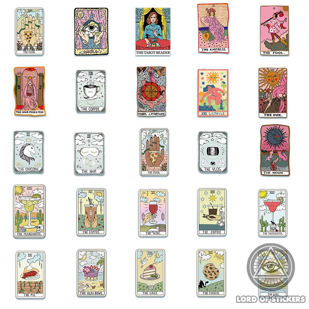 Set 50 Nhãn Dán Hình Lá Bài Tarot Sticker Chống Thấm Nước Trang Trí Mũ Bảo Hiểm, Laptop, Miếng Dán Sổ Dễ Thương