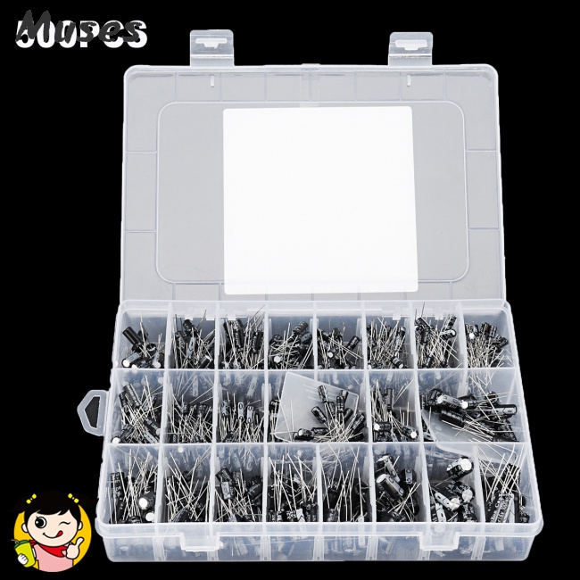 Chất liệu: Đây là 24 loại tụ điện phân 500 chiếc, chất liệu tuổi thọ cao. Phạm vi: Tụ điện điện phân 0,1uF đến 1000uF. Bảo quản tiện lợi: Hộp đẹp và chắc chắn giúp bạn sắp xếp tất cả các nắp. Hộp phân loại để dễ dàng truy cập: lưu trữ phân loại, tạo ra 24 loại thông số kỹ thuật của sản phẩm theo thứ tự. Dấu chung: Tất cả các tụ điện đều được đánh dấu bằng các giá trị số để dễ dàng tìm kiếm. Mô tả: