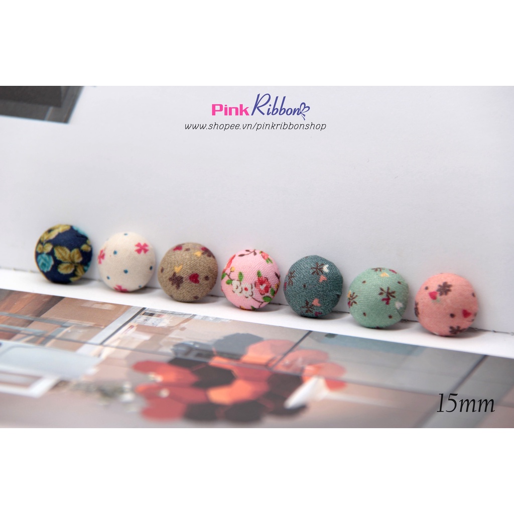 Giới thiệu [Set 5c] Hạt bẹt bọc vải hoa vintage kích thước 15mm